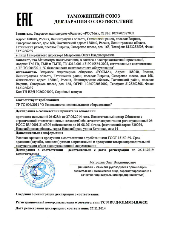 Манометр TM310Р Dy 63 с нижним подключением 1/4″, 0-6 бар (кл. точн. 2,5) (1/100)