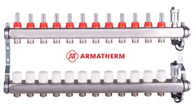 Колекторная группа НЕРЖ с расходомер,автомат.воздухоотвод. и дренаж.клап.1″х11вых.3/4 ARMATHERM