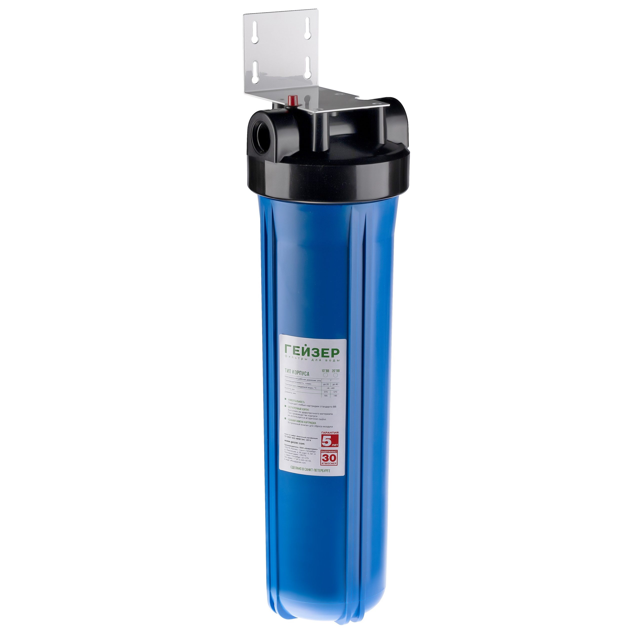 Надежный корпус фильтра Гейзер 50688 предназначен для очистки холодной воды на входе в водопроводную систему. Совместим со всеми стандартными картриджами формата 20" Big Blue (20BB). Изготовлен из пищевого полипропилена, безопасного для питьевой воды.