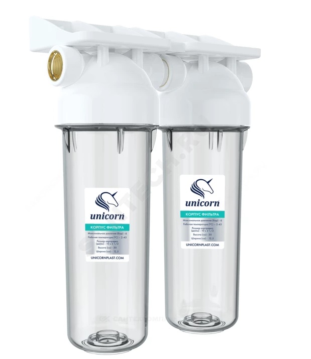 Корпус фильтра пластик 1/2″ ВР (двойной) Slim Line 10″ Unicorn KSBP_1/2_DUO