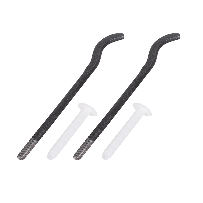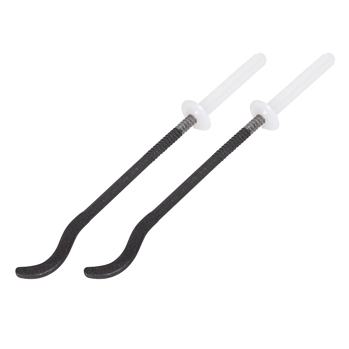 Комплект кронштейнов с дюбелями предназначен для настенного крепления алюминиевых и биметаллических радиаторов. У металлических кронштейнов размером 170х7,2 мм на одном конце — плоский крюк, на другом — штырь с резьбой. Цвет покрытия — черный. Дюбели изготовлены из пластика белого цвета. В комплект входят по два дюбеля и кронштейна.