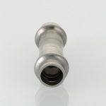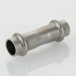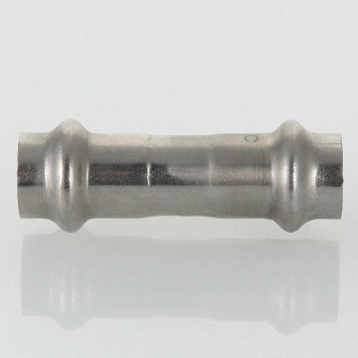 (VTi.903.I) Двухраструбная пресс-муфта из нержавеющей стали предназначена для соединения тонкостенных стальных труб в системах водоснабжения, отопления, других инженерных и технологических установках с рабочей температурой до 120 °С. Номинальное давление – 16 бар.