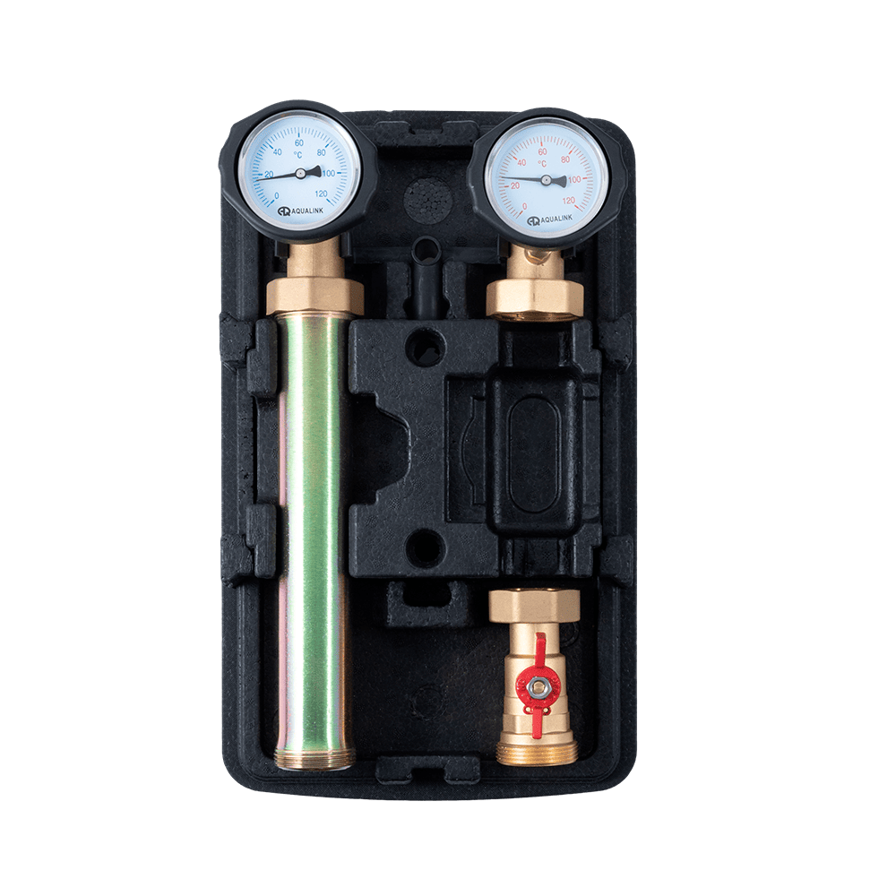 Насосная группа быстрого монтажа с прямым контуром AQUALINK 1 1/2" (ГБМ) — предназначена для распределения теплоносителя в системах отопления без его смешения. Подходит для подключения высокотемпературных контуров, таких как радиаторное отопление или теплообменники ГВС. Насосная группа обеспечивает удобство монтажа, повышает эффективность системы отопления и продлевает срок службы оборудования. Кожух изделия позволяет снизить тепловые потери при транспортировке теплоносителя, что позволяет экономить энергию при работе котла. Циркуляционный насос не входит в комплект поставки и приобретается отдельно. Необходимый монтажный размер циркуляционного насоса – 180 мм.