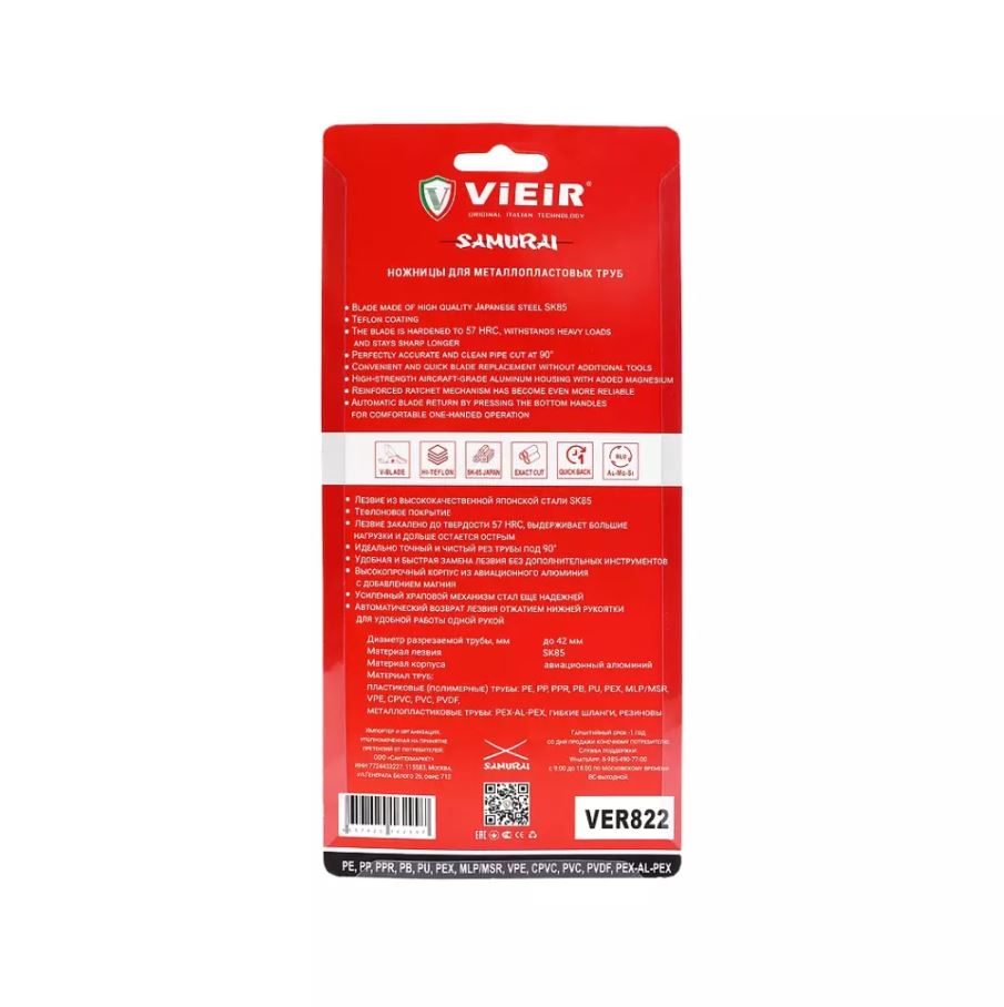 Ножницы SAMURAI для металлопластиковых труб VER822