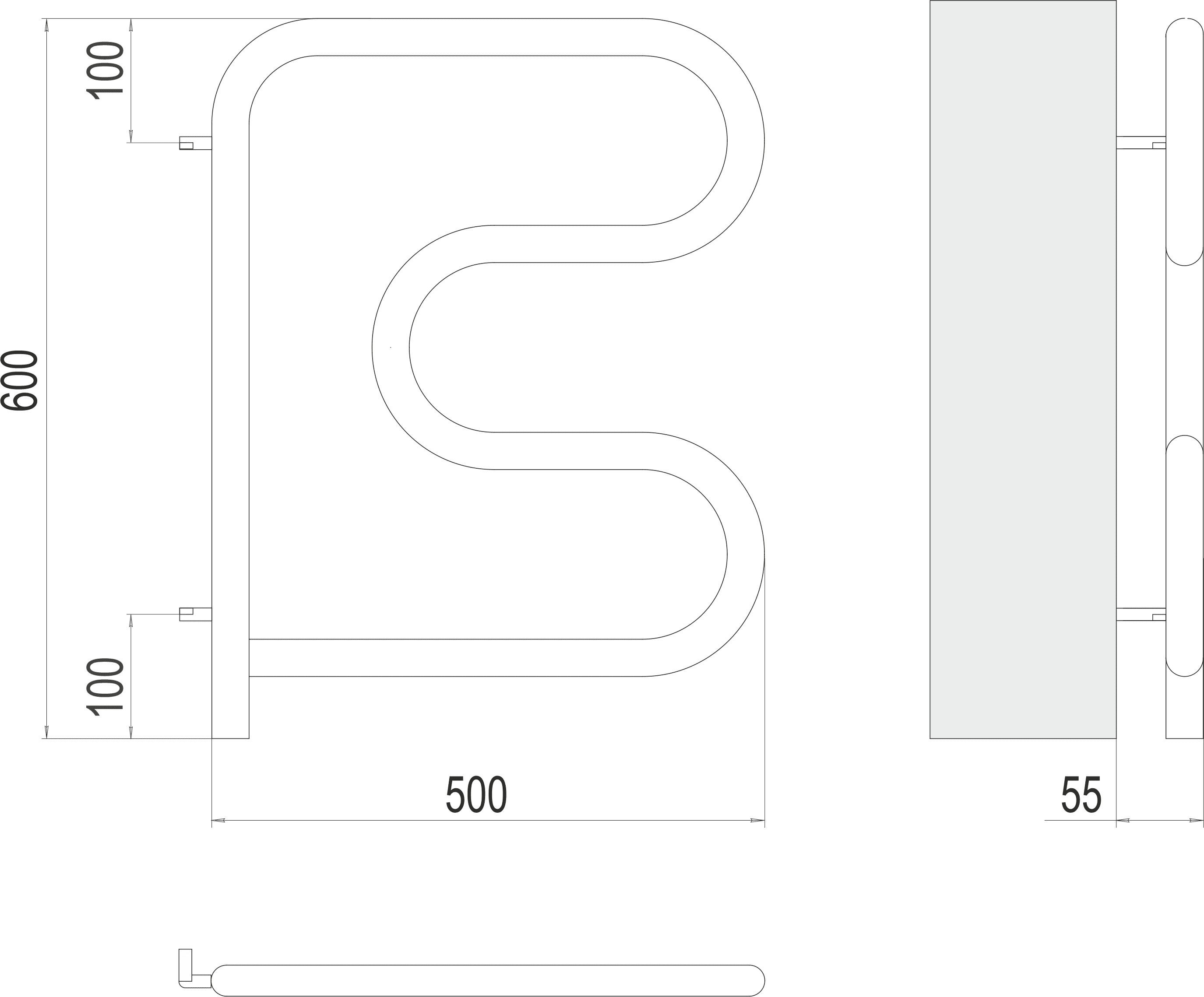 F-обр. электро-полотенцесушитель 500х500 (ТЕРМИНУС)