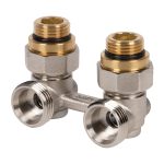 Благодаря угловой конструкции используется в случаях, когда трубы подходят снизу со стороны стены. Корпус изготовлен из прочной латуни с никелированным покрытием, устойчив к коррозии и рассчитан на долгий срок службы. Уплотнители из EPDM обеспечивают герметичность соединений. Подходит для работы в центральных и автономных системах отопления, заполненных водой или водным раствором гликоля.